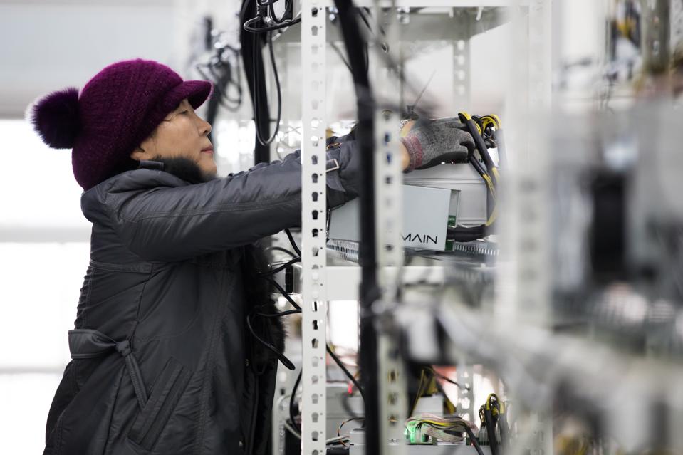 Seo Hee-jin inspects an application-specific integrated circuit (ASIC) device and power unit, manufactured by Bitmain Technologies Inc., at her cryptocurrency mining facility in Incheon, South Korea, on Friday, Dec. 15, 2017. Hedge funds are pulling out of gold bets as more exciting moves in equities and cryptocurrencies make safe-haven investments look boring. Photographer: SeongJoon Cho/Bloomberg