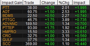 ผู้สื่อข่าวรายงานว่า ดัชนีช่วงเช้าปิดที่ระดับ 1,349.49 จุด เพิ่มขึ้น 19.73 จุด หรือ 1.48% มูลค่าการซื้อขาย 2.77 หมื่นล้านบาท