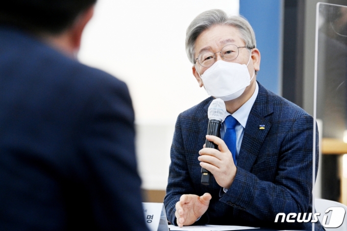 | 이재명 경기도지사가 16일 오전 경기도 수원시 영통구 GH 기본주택 홍보관에서 열린 현장 간담회에 참석해 발언하고 있다. /사진=뉴스1 |